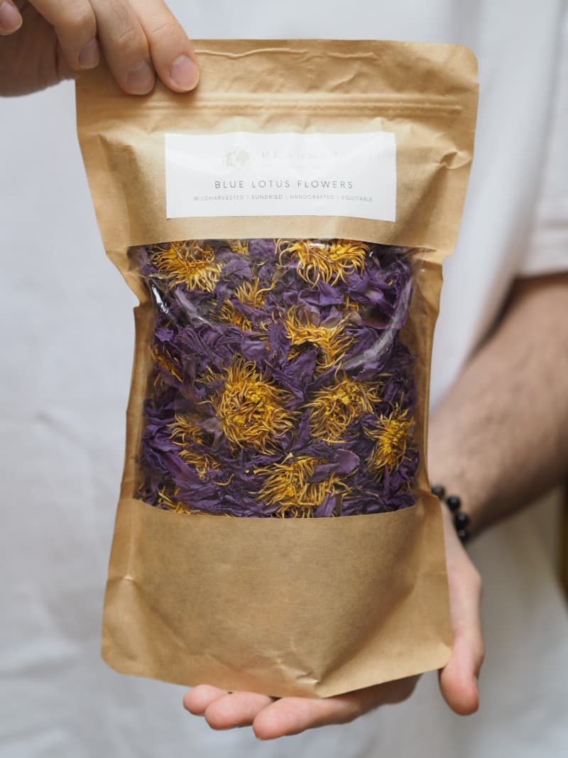 Květy Modrého Lotusu v nejvyšší kvalitě jsou s láskou a ručně sbírané v divoké přírodě uprostřed srílanské divočiny a sušené pod přímými slunečními paprsky.