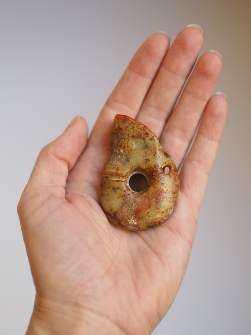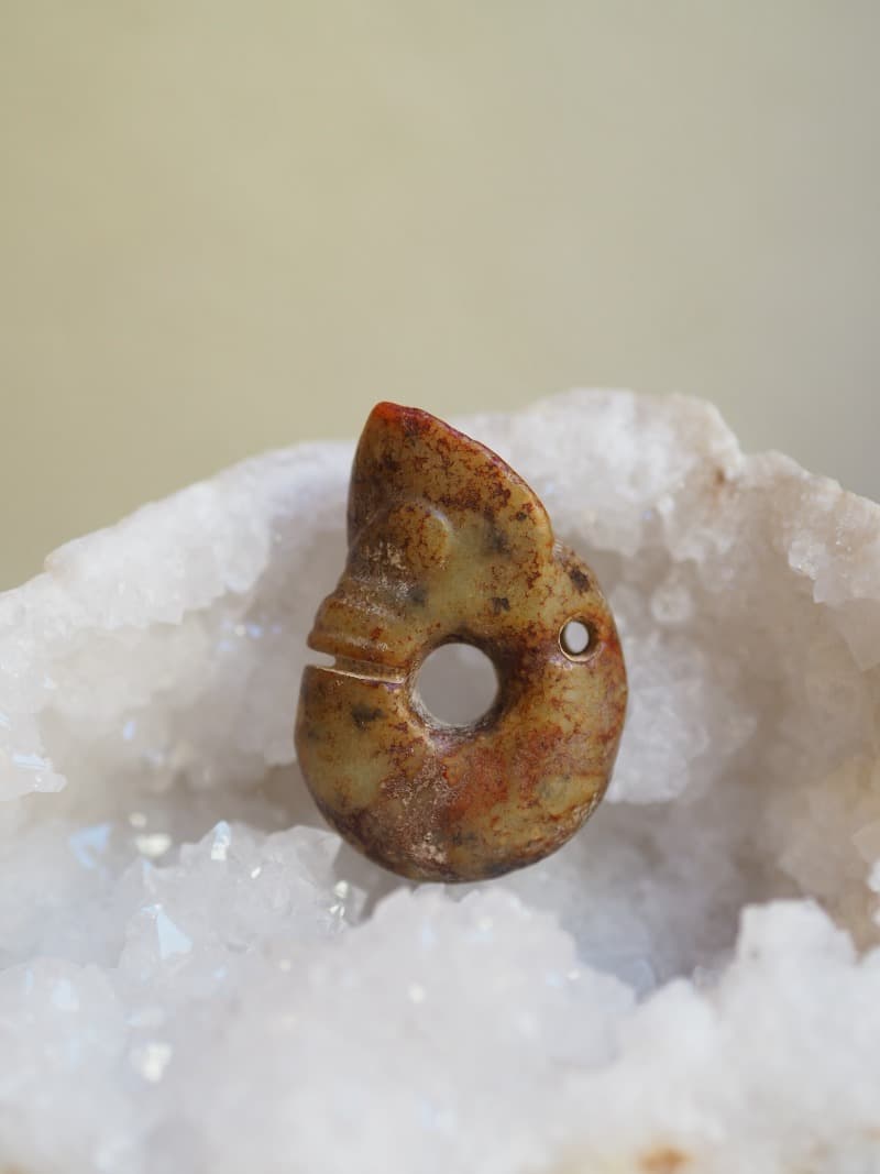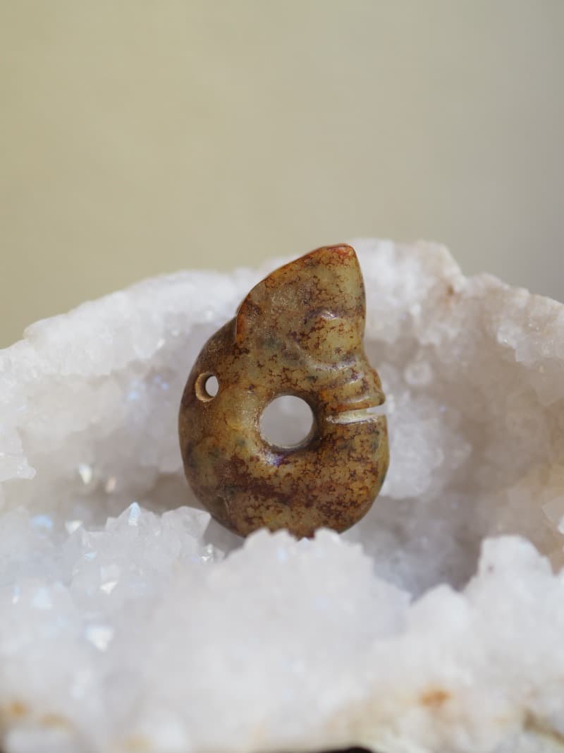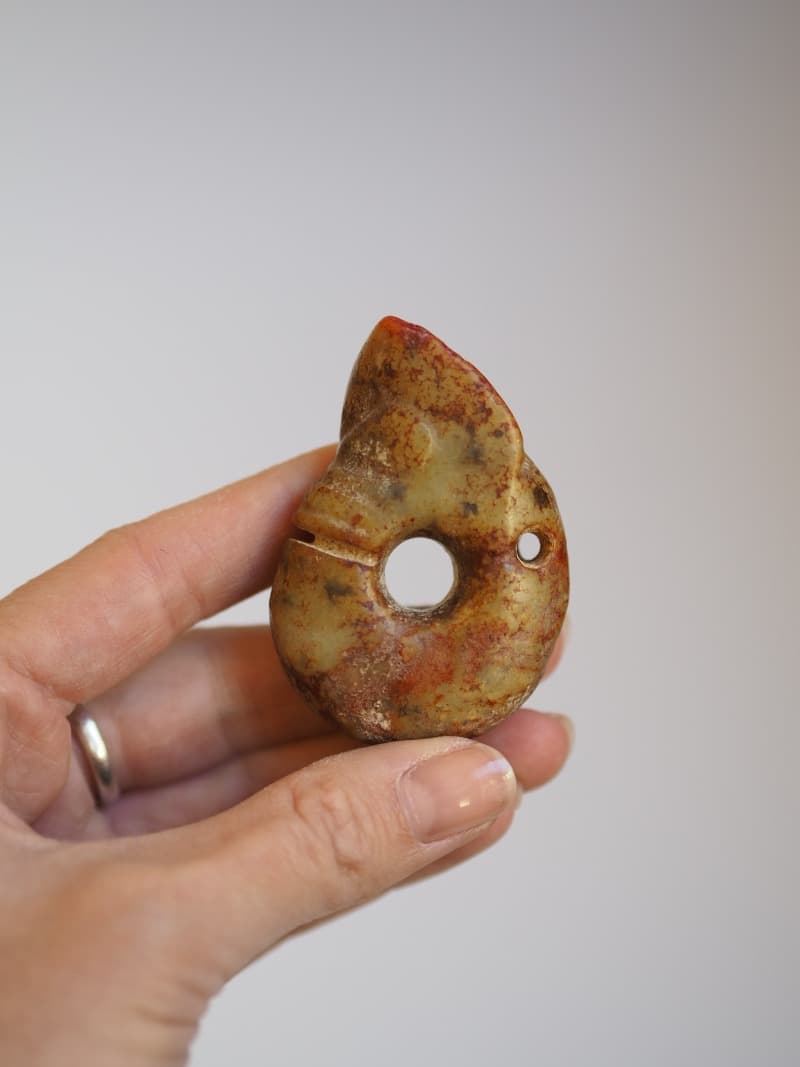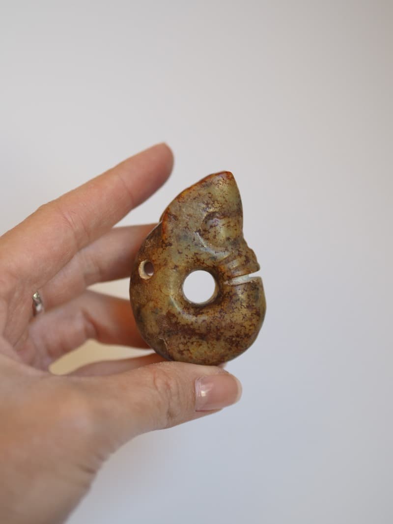 Ponořte se do mystiky starověké Číny s tímto exkluzivním artefaktem – ručně vytesaným kamenným Drakem z Nefritu z kulturního bohatství Hongshan. Tento vzácný klenot s povrchovou oxidací nese sílu a symboliku Draka, která v tradiční čínské kultuře (nejen) znamená osobní sílu, duchovní bohatství, moudrost, štěstí, hojnost, prosperitu a úspěch.