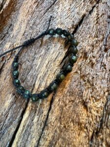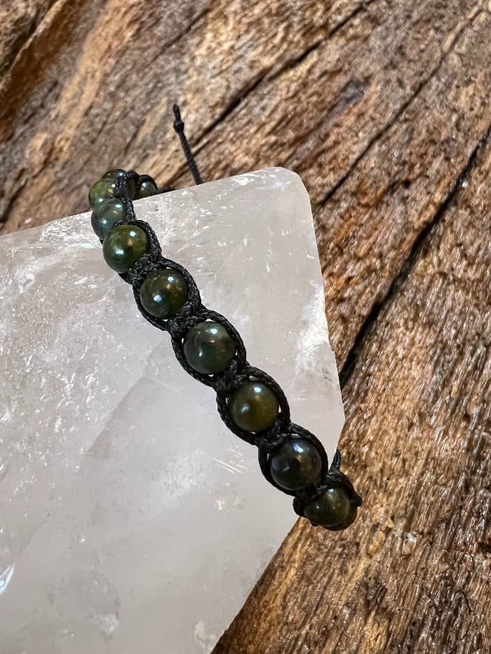 Šambala náramek z kuliček kanadského Nefritu se díky kombinaci uzlíků lehce přizpůsobí každé ruce. Temná zeleň vzácného kamene Nefritu vytvoří ostrůvek klidu a uzemnění v naší uspěchané době a mysli. Šťastné majitelce vnáší do života harmonii.