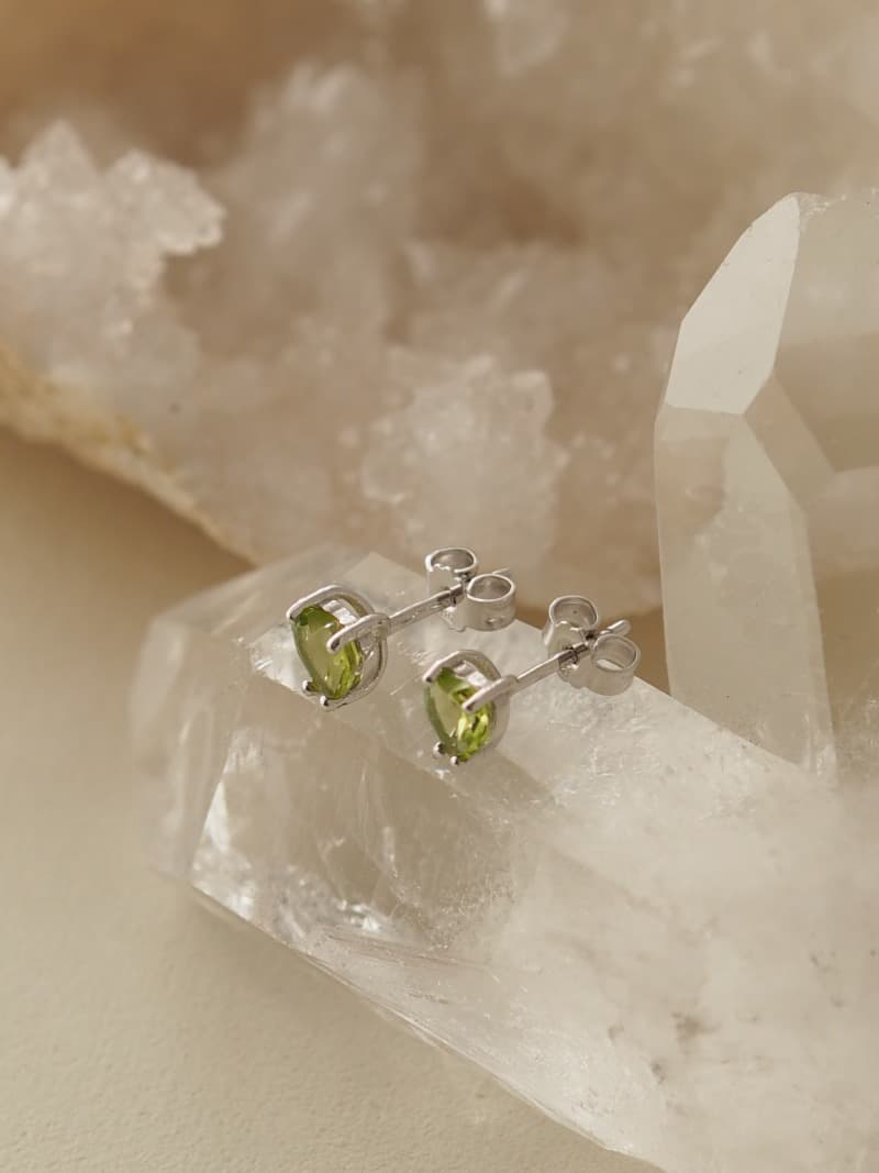 Náušnice s Olivíny, jež otvírají srdce lásce a soucitu. Olivín posiluje naši vnitřní sílu a sebedůvěru. Propojuje nás s přírodou a vnáší do života klid. Přitahuje štěstí i peníze. Také je výborný ochránce před negativními silami a dobře očišťuje naši psychiku i fyzické tělo. Svému nositeli doplňuje energii a harmonizuje.