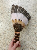 Peříčka jsou lepená včelím voskem. S vějířem je třeba zacházet jemně a uchovávat ho při převážení v pevné krabičce, aby se peří příliš nepoškodilo. Věřím, že vějíř bude milým společníkem při Vašich rituálech.