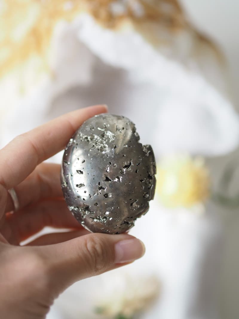 Pyrit je kamenem světla, hojnosti a pozitivní energie. Dodává energii a přitahuje do života hojnost v mnoha oblastech života – zdraví, lásky, práce, financí, vztahů. Povzbuzuje kreativitu a příliv nových nápadů. Podporuje akční energií a vůli konat.