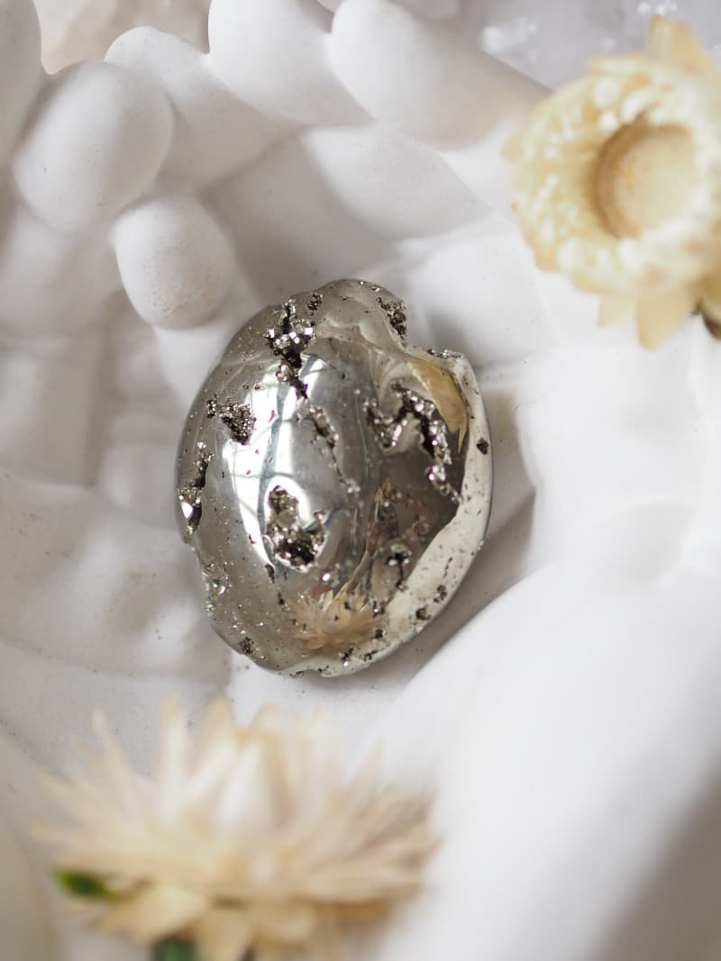 Pyrit je kamenem světla, hojnosti a pozitivní energie. Dodává energii a přitahuje do života hojnost v mnoha oblastech života – zdraví, lásky, práce, financí, vztahů. Povzbuzuje kreativitu a příliv nových nápadů. Podporuje akční energií a vůli konat.