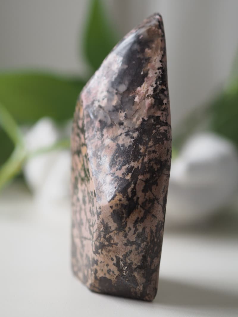 Rodonit je kamenem rovnováhy a harmonie. Krásně uzemňuje. Podporuje toleranci k názorům druhých a vidění světa přes naše srdce.