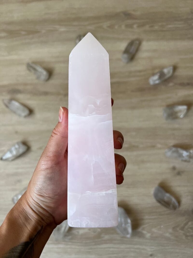 Růžový Kalcit je kamenem odpuštění a přináší bezpodmínečnou lásku. Pomáhá s léčením zažitých traumat různého původu.