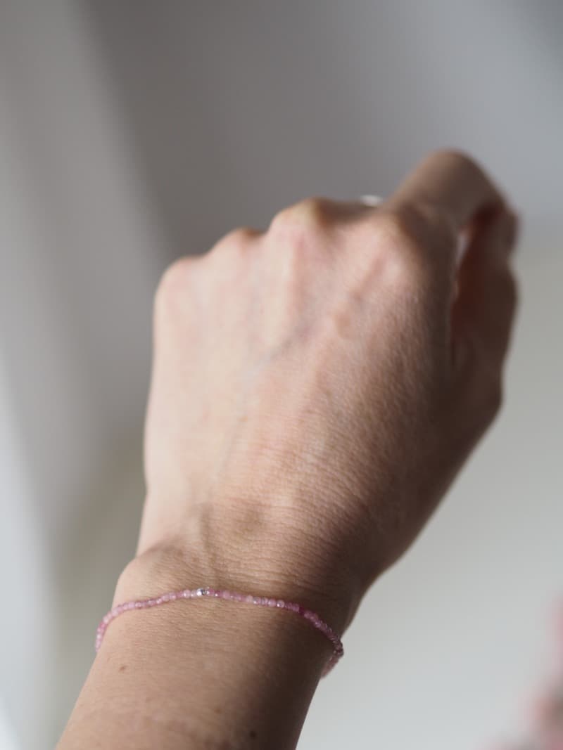 Náramek z drobných broušených korálků z překrásného růžového Turmalínu podtrhnou krásu každé ženy. Už ve starobylých spisech se tvrdí, že Rubelit své nositelce přinese jemnost i sebelásku a blahodárně působí na její srdce.