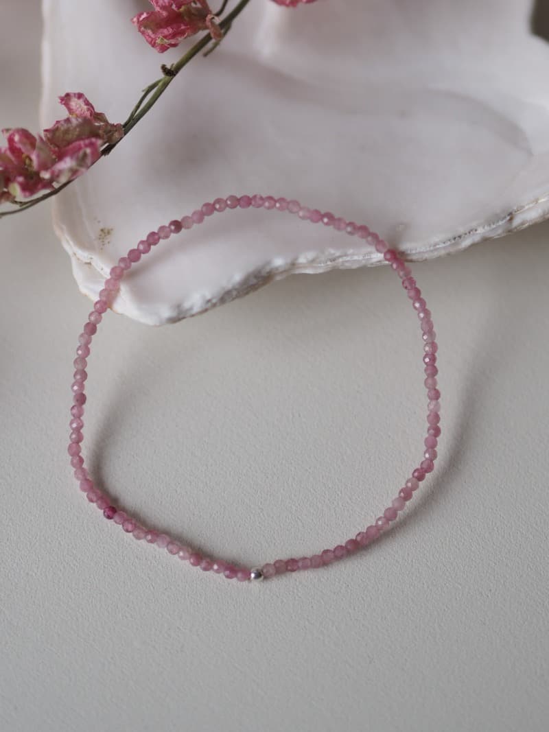 Rubelit je silný ochranný kámen. Dodává energii a rozproudí životní sílu. Rubelit učí sebelásce a podporuje odvahu. Posiluje schopnosti projektovat, tvořit a manifestovat své cíle. Pomáhá ustát si vlastní rozhodnutí, prosadit jej a jít svou vlastní životní cestou a nesejít z ní. Jeden korálek Stříbro Ag 925/1000. Průměr kamene: 2 mm. Obvod náramku cca 18 cm.