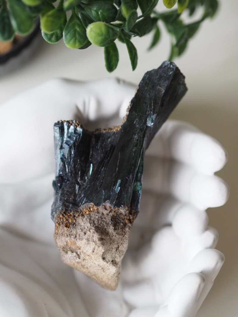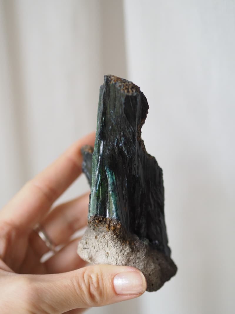 Krystaly velmi vzácného minerálu Vivianitu mají temně zelenou barvu s modrými odlesky a pochází z Amazonie. Je vhodným kamenem pro meditace. Velmi podporuje intuici a je silným ochranným kamenem. Blahodárně působí na korunní čakru a oblast krku. Dodává inspiraci a přitahuje hojnost – hmotnou i duchovní. Rozjasňuje mysl a rozvíjí sny.