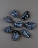 Vločkový Obsidián je přírodní nerost tmavé až černé barvy s charakteristickými světlejšími „vločkami“, které vytvářejí jemný kontrast a připomínají přírodní vzory.
