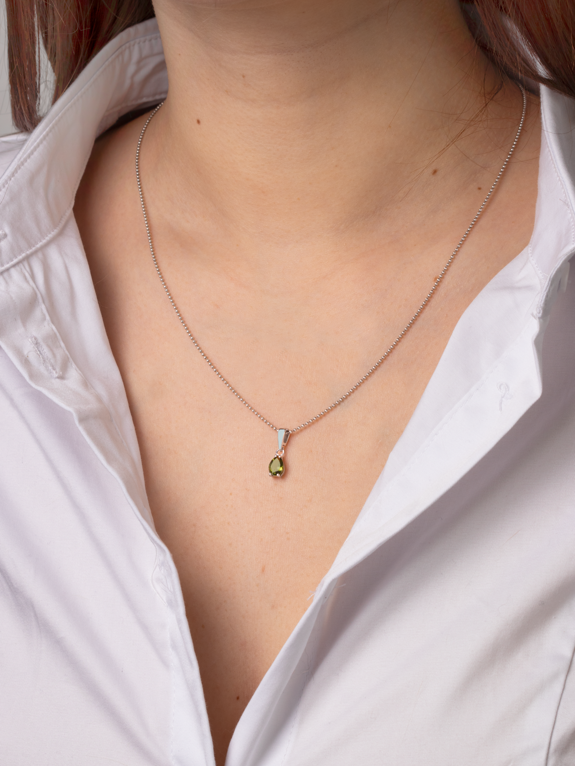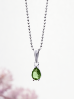 Precizně zpracované stříbro českými šperkaři podtrhuje přirozenou krásu Vltavínu a nechává vyniknout jeho charakteristickou strukturu i jemné odstíny zelené.