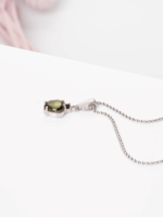 Precizně zpracované stříbro českými šperkaři podtrhuje přirozenou krásu Vltavínu a nechává vyniknout jeho charakteristickou strukturu i jemné odstíny zelené.
