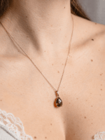 Precizně zpracované zlato Au 585/1000 českými šperkaři podtrhuje přirozenou krásu Vltavínu a nechává vyniknout jeho charakteristickou strukturu i jemné odstíny zelené.