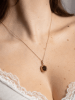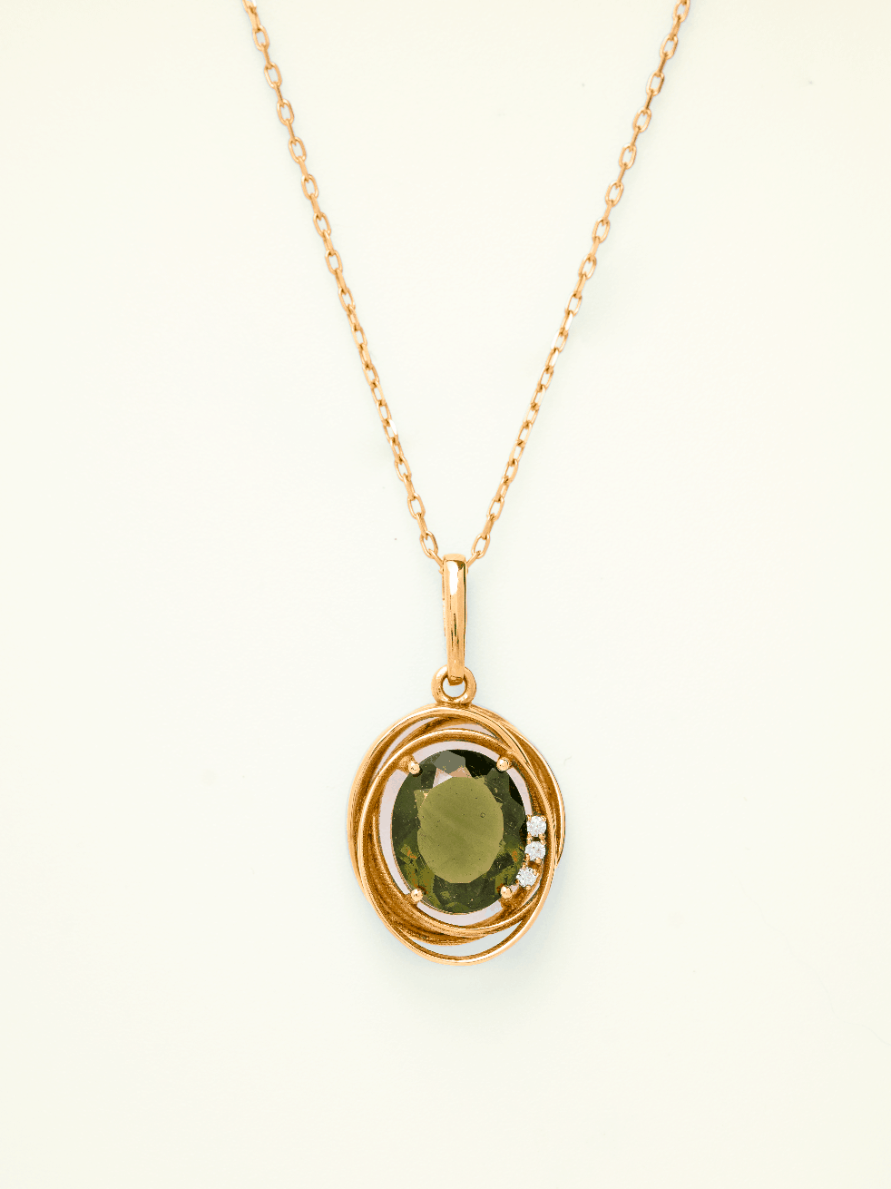 Precizně zpracované zlato Au 585/1000 českými šperkaři podtrhuje přirozenou krásu Vltavínu a nechává vyniknout jeho charakteristickou strukturu i jemné odstíny zelené.