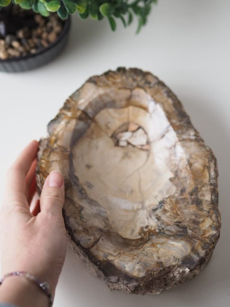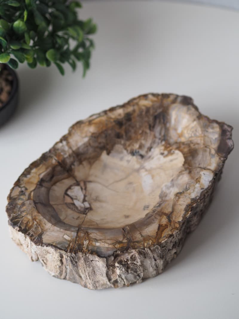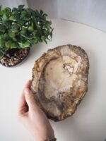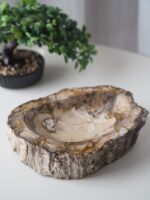 Masivní mísa z Araukaritu – zkamenělého dřeva, je unikátní dekorace s tisíciletou historií. Jedinečná krása přírody. Krásný designový kousek, který nabije Vaše potraviny či šperky pozitivní energií a životadárnou energií matky Země.