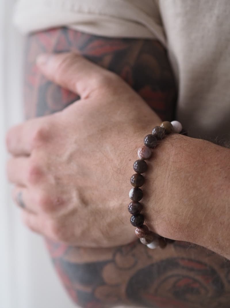 Průměr korálku cca 8 mm. Obvod náramku cca 21 cm.